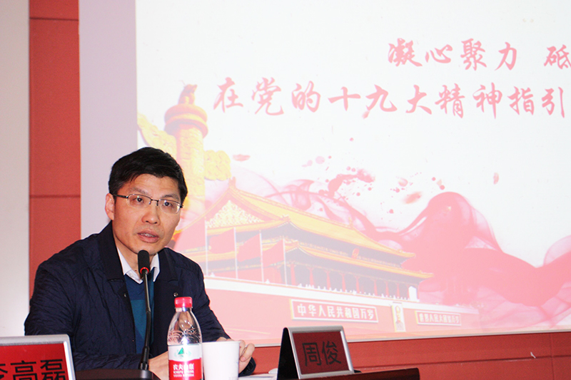 圖:周俊在集團(tuán)總部宣講十九大精神