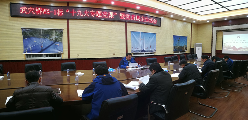 2月2日晚,路橋集團(tuán)副總經(jīng)理蔡明征在武穴橋WX-1標(biāo)項(xiàng)目部以"不忘初心,牢記使命――在黨的十九大精神指引下鑄就路橋新輝煌"為主題進(jìn)行了十九大專題黨課的宣講。