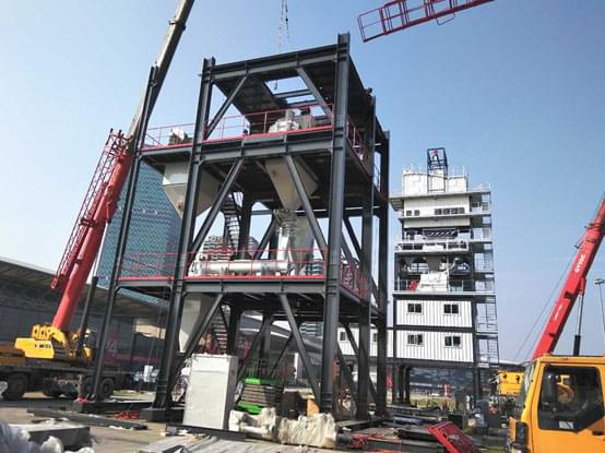 今天是上海寶馬展南方路機(jī)展品進(jìn)場安裝的第五天。天氣晴朗,陽光明媚,安裝團(tuán)隊(duì)干勁十足,安裝工作進(jìn)展比預(yù)期中快,瀝青攪拌設(shè)備原生部分主樓安裝完成,緊接著進(jìn)入熱再生部分吊裝,干混砂漿攪拌設(shè)備也安裝至攪拌層。