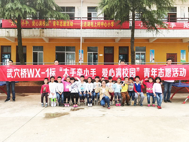 春光燦爛,花團(tuán)錦簇,湖北路橋武穴橋一標(biāo)項(xiàng)目的青年們卻無(wú)暇欣賞那漫山的芳華,他們帶著滿滿的愛心奔向那心中牽掛的祖國(guó)花朵們,用自己堅(jiān)強(qiáng)的大手拉起孩子稚嫩的小手,一同溫暖前行。