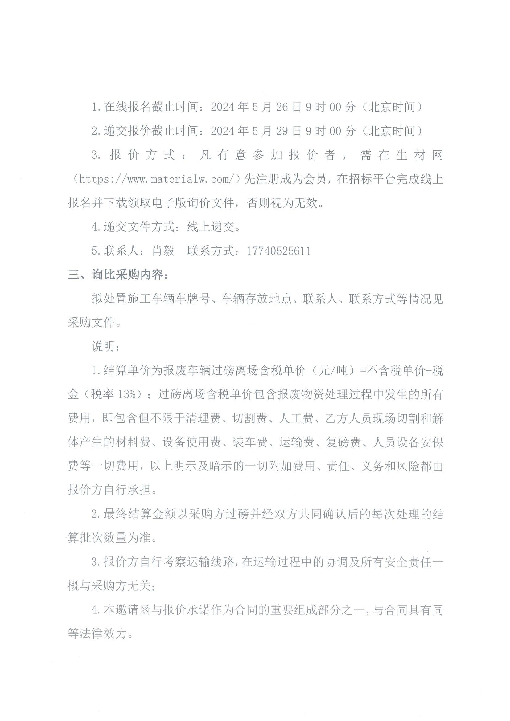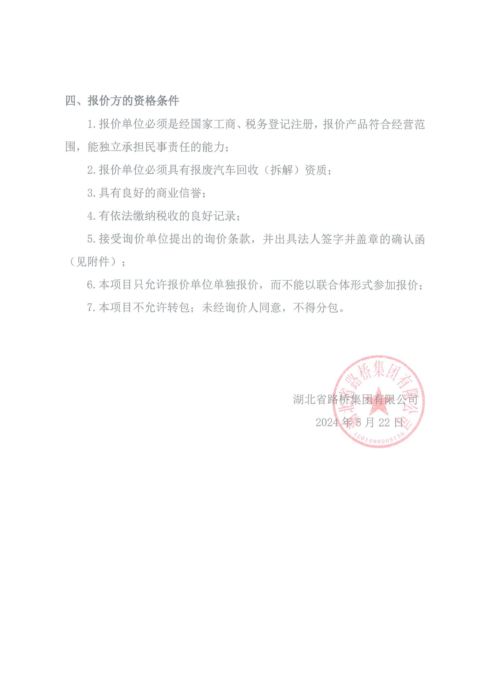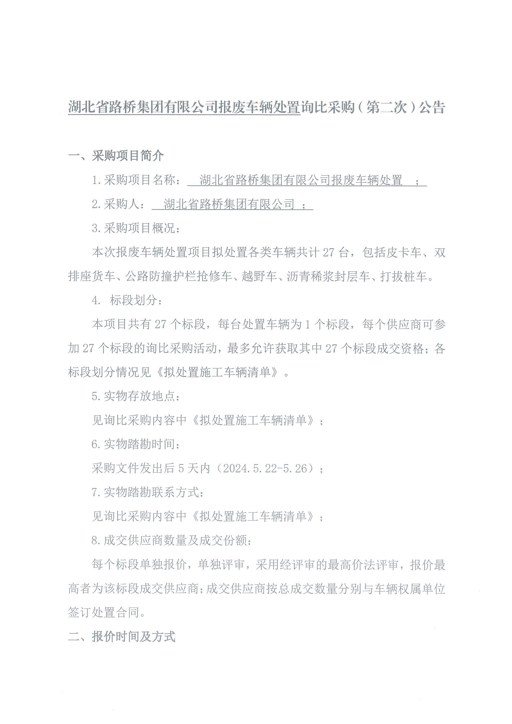 湖北省路橋集團(tuán)有限公司報(bào)廢車輛處置詢比采購(第二次)公告